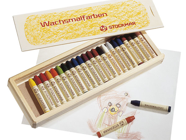 Stockmar Wachsmalfarben, 24 Stifte sortiert in Holzkassette