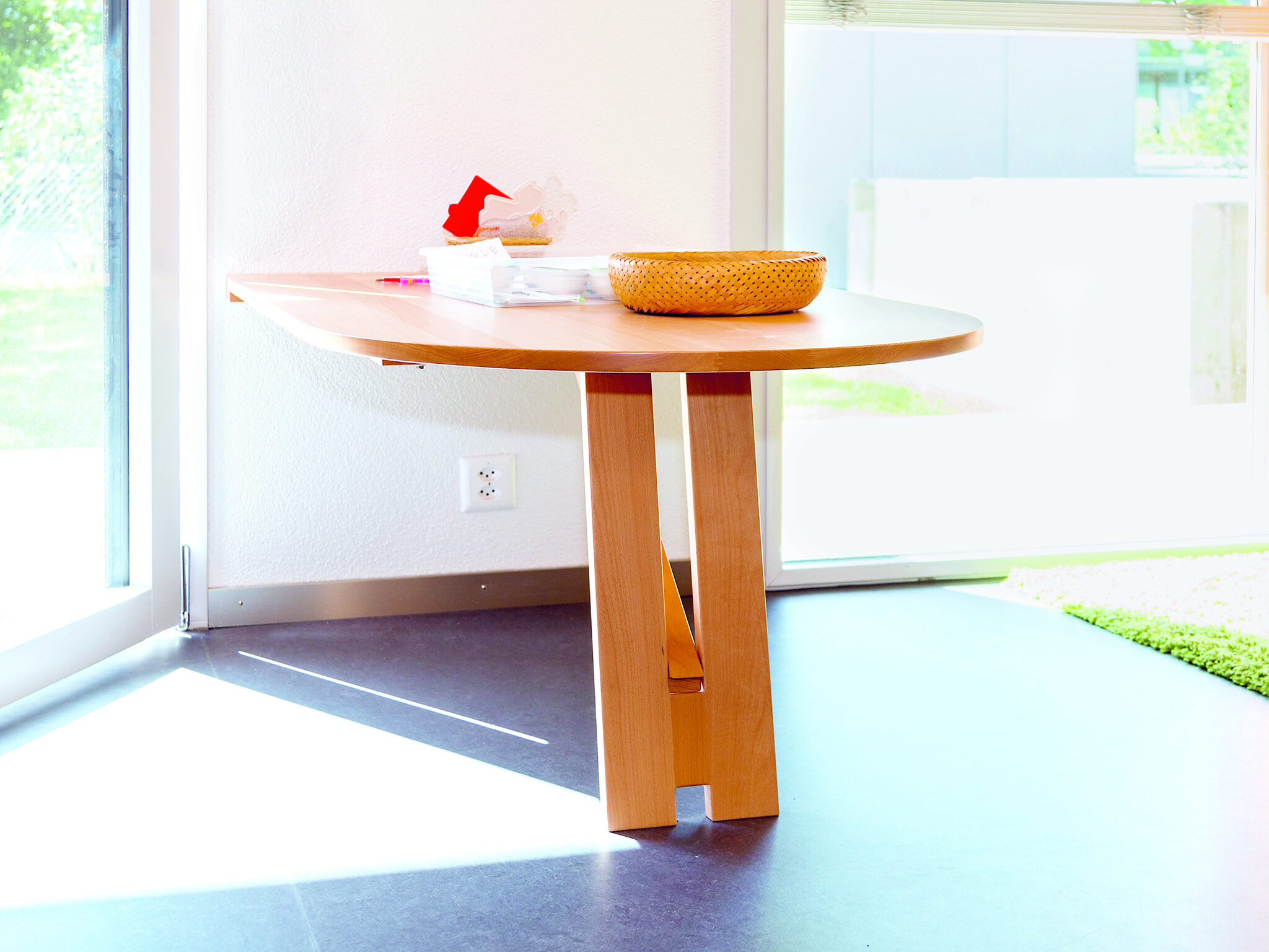 Praktischer Wandklapptisch. Spart Platz, ist einfach in der Handhabung, ist stabil und einfach ein- und ausklappbar.