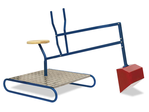 Für Kinder von 3 - 8 Jahren. Diese Baggerausführung kann auch ausserhalb eines kleinen Sandkastens aufgestellt werden. Dank der hohen Sitzposition kann von aussen in den Sandkasten gebaggert werden. Manuell bedienbar, rundum drehbar. Aus Bandstahl und Stahlrohr, pulverbeschichtet blau, rot. Sitz aus massivem einheimischen Fichtenholz. Holzteile mit einer Lasur für den Aussenbereich behandelt. Ausleger (ausgestreckt) 100 cm, Schaufel Grösse 16 cm x 20 cm x 10 cm. Sitzhöhe 47.5 cm.