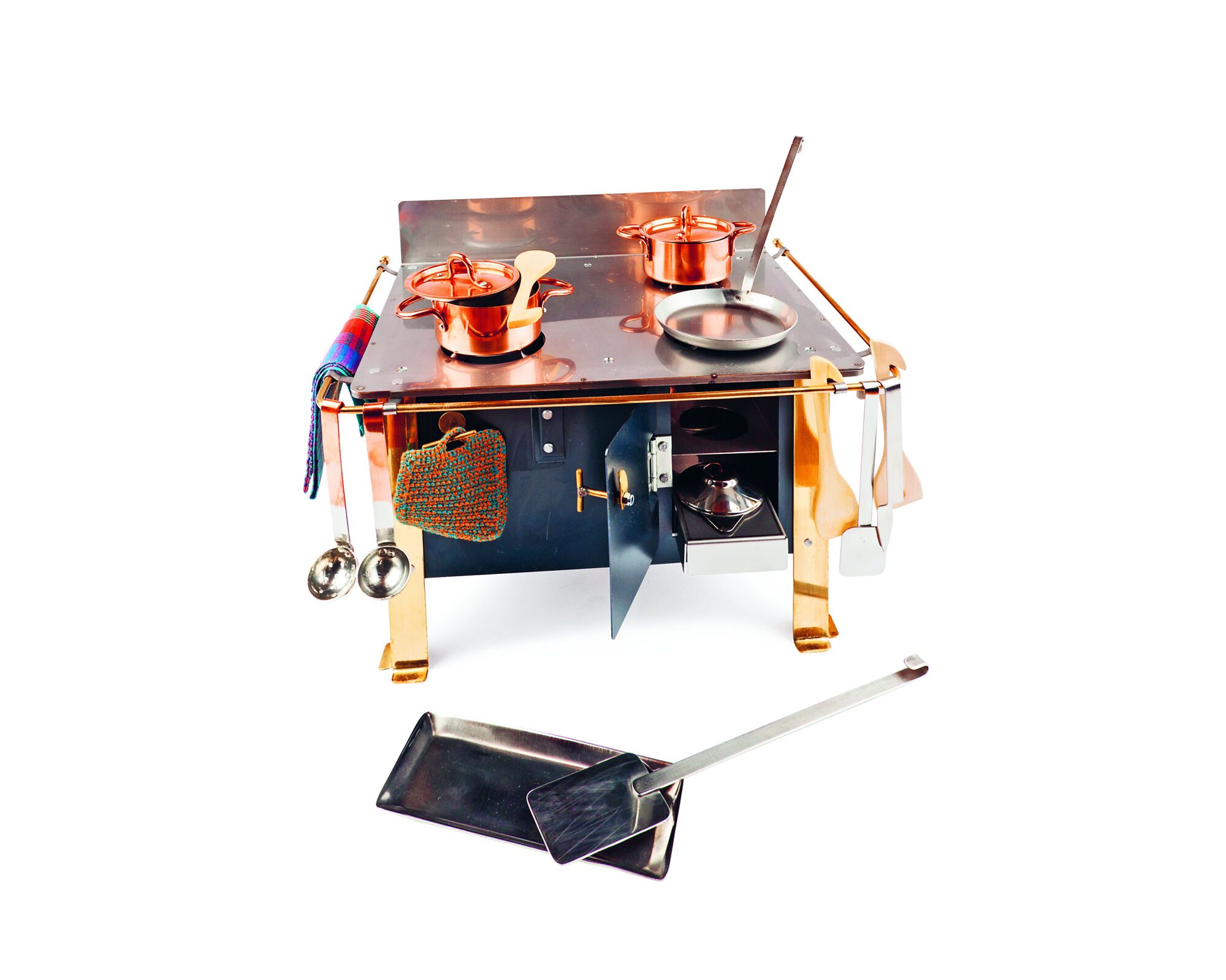 Aus Metall, mit Brennpaste beheizbar.