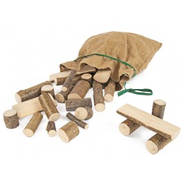 Rindenbauklötze im Jutesack